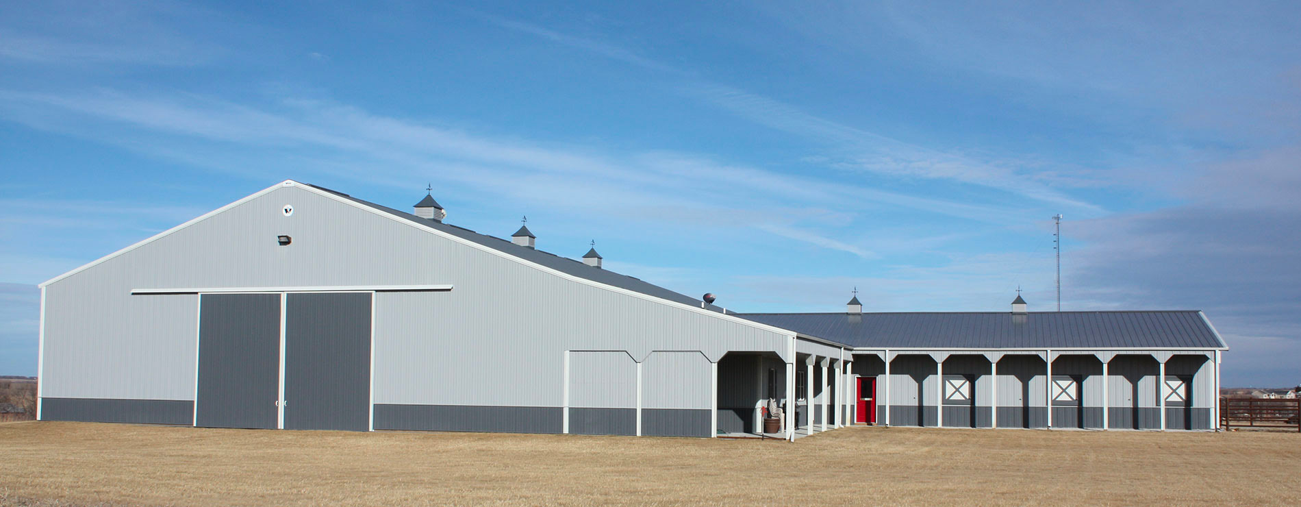 Wick Buildings specializes in open spaces up to 100 feet — ideal for large equestrian riding arenas and training facilities. Wick can also incorporate great features into the design such as lounges, viewing rooms and clubhouses with laundry and kitchens.